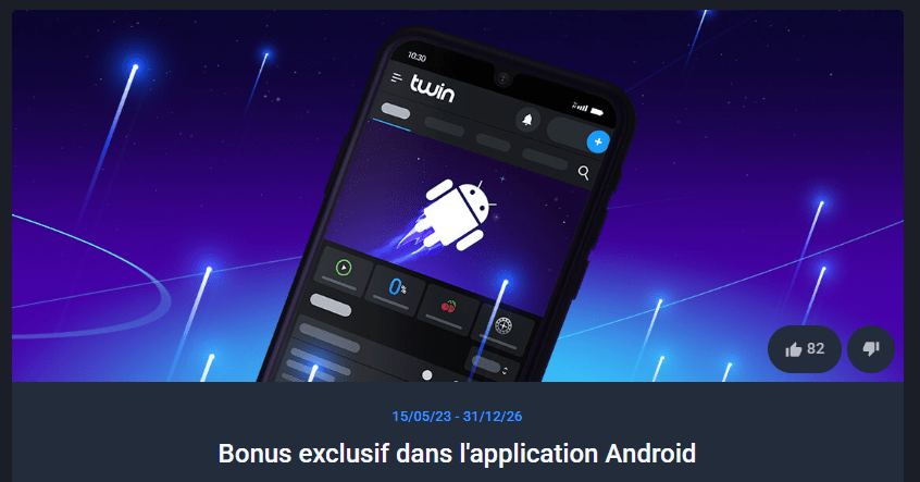 Une application Android Twin est également disponible. Elle permet d’accéder rapidement au casino et aux paris sportifs, avec les mêmes fonctionnalités que sur ordinateur. L’ensemble donne une impression de confort d’usage : on trouve ce que l’on cherche sans détour, que l’on joue depuis son canapé ou en déplacement.