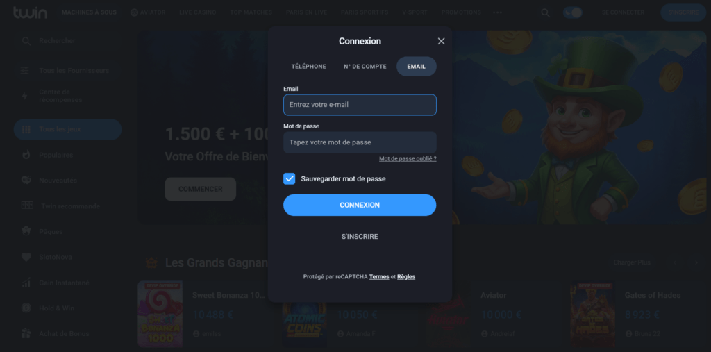 Que vous soyez sur ordinateur ou mobile, le login sur Twin Casino vous permet de retrouver en quelques secondes vos jeux favoris, votre solde et l’ensemble des fonctionnalités de votre compte. Pas de détours inutiles, pas de manipulation complexe. Vous arrivez sur le site, vous vous identifiez, et vous êtes prêt à jouer !